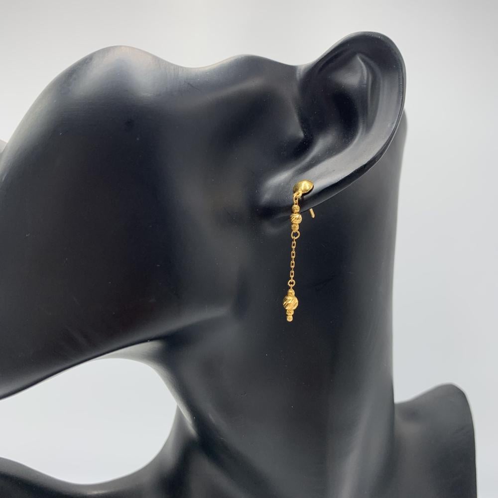 حلق بحريني ذهب عيار 21 بتصميم متدلي مزين بكرات محفورة