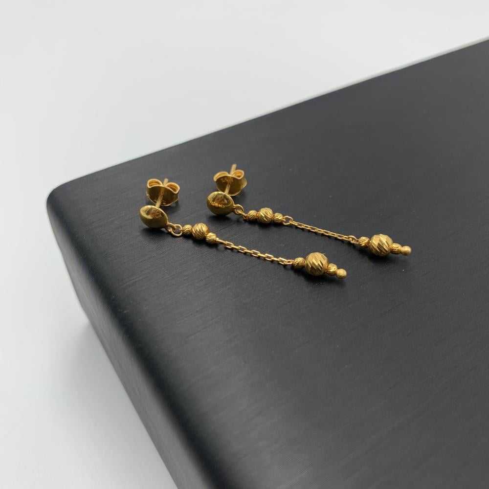 حلق بحريني ذهب عيار 21 بتصميم متدلي ناعم بكرات محفورة - وزن 2.09 جرام | لمسة أنثوية راقية للمناسبات والإطلالات اليومية