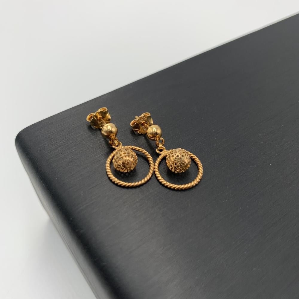 حلق بحريني ذهب عيار 21 بتصميم دائري مفرغ بلمسة تراثية - وزن 2.19 جرام | تميز أنيق يجمع بين الأصالة والحرفية