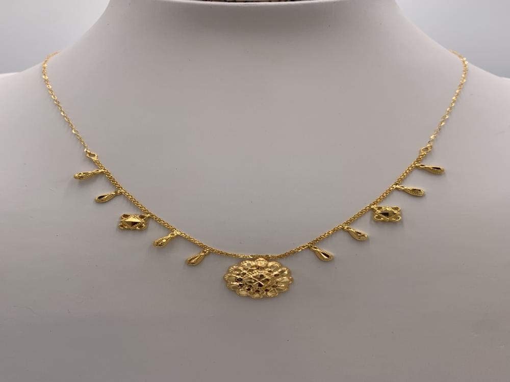 عقد بحريني ذهب عيار 21 بتعليقة دائرية مزخرفة – وزن 1.95 جرام