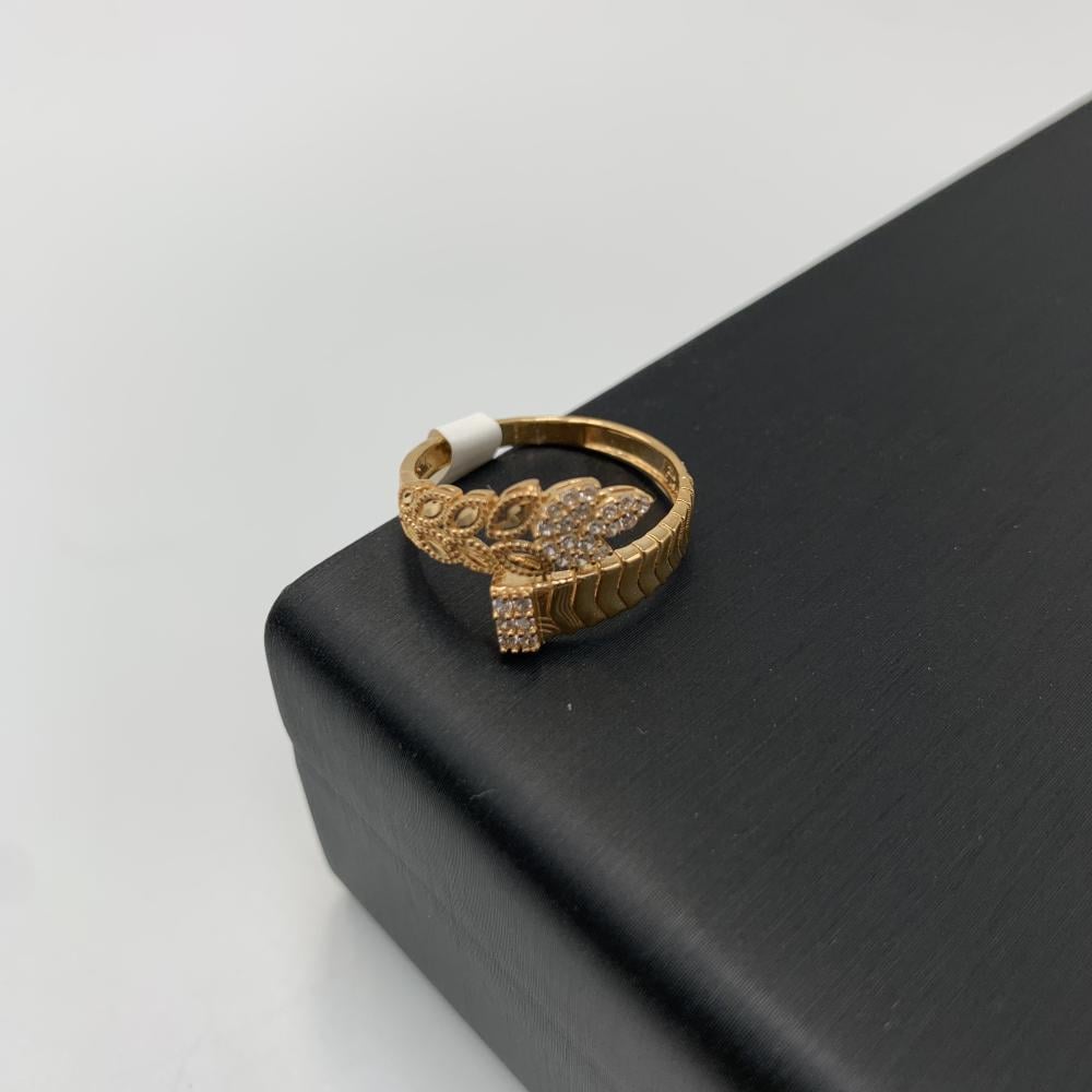 خاتم ذهب بحريني عيار 21 بتصميم ورقة مرصعة – الوزن 2.53 جرام