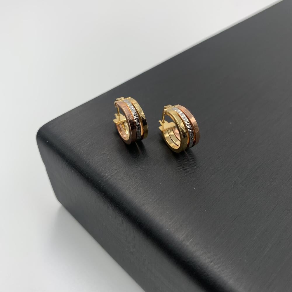 حلق إيطالي ذهب عيار 18 بتصميم ثلاثي الألوان الفاخر - وزن 1.92 جرام | أناقة جريئة بلمسة عصرية