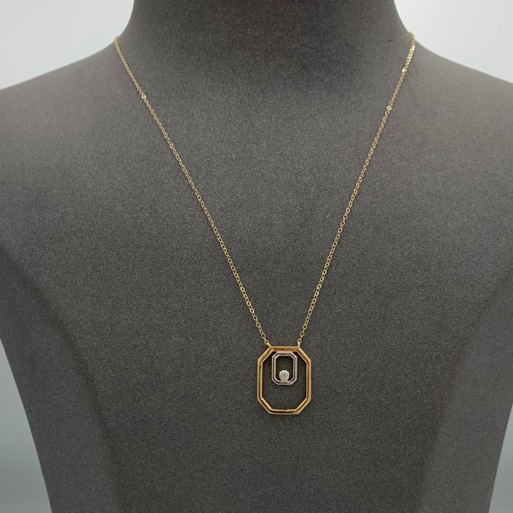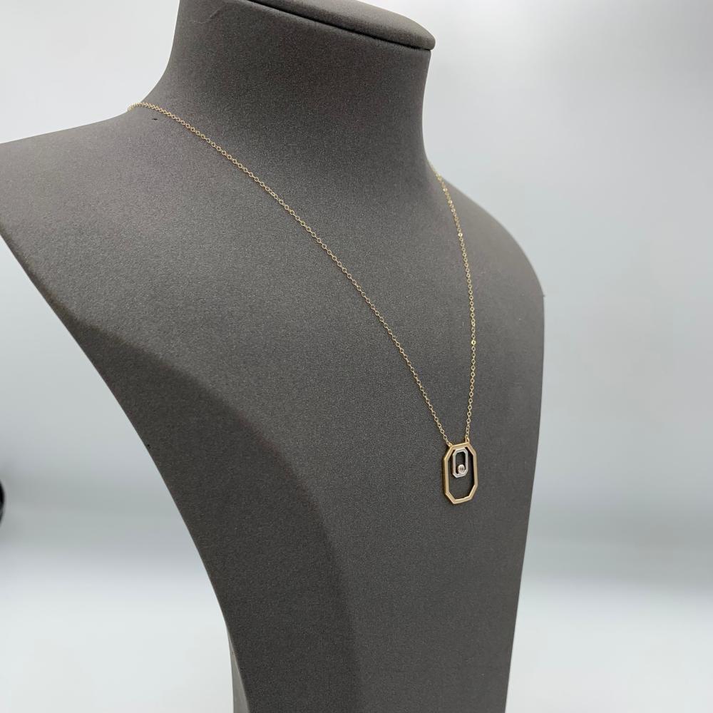 عندما تلتقي البساطة مع الفخامة، تكون النتيجة قطعة فنية مثل هذا العقد الإيطالي الرائع. تصميم هندسي سداسي الشكل مفرغ تتوسطه حبة فص براقة تمنحه توازنًا مثاليًا بين الخفة والتألق.