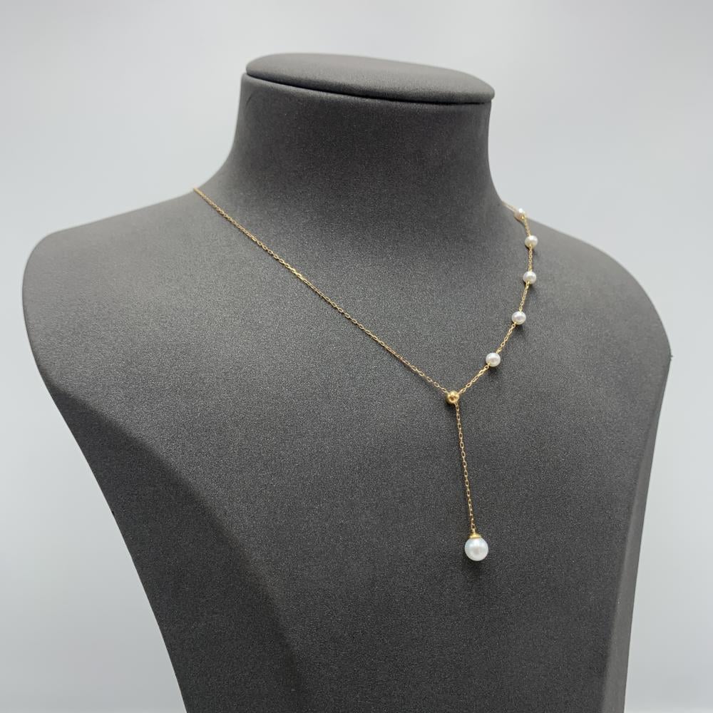 يتميز هذا العقد بتصميم جانبي عصري يزينه صف من اللآلئ الصغيرة المتناسقة مع تدلية لؤلؤة رئيسية تمنحك حضورًا أنثويًا متألقًا يناسب مختلف المناسبات.