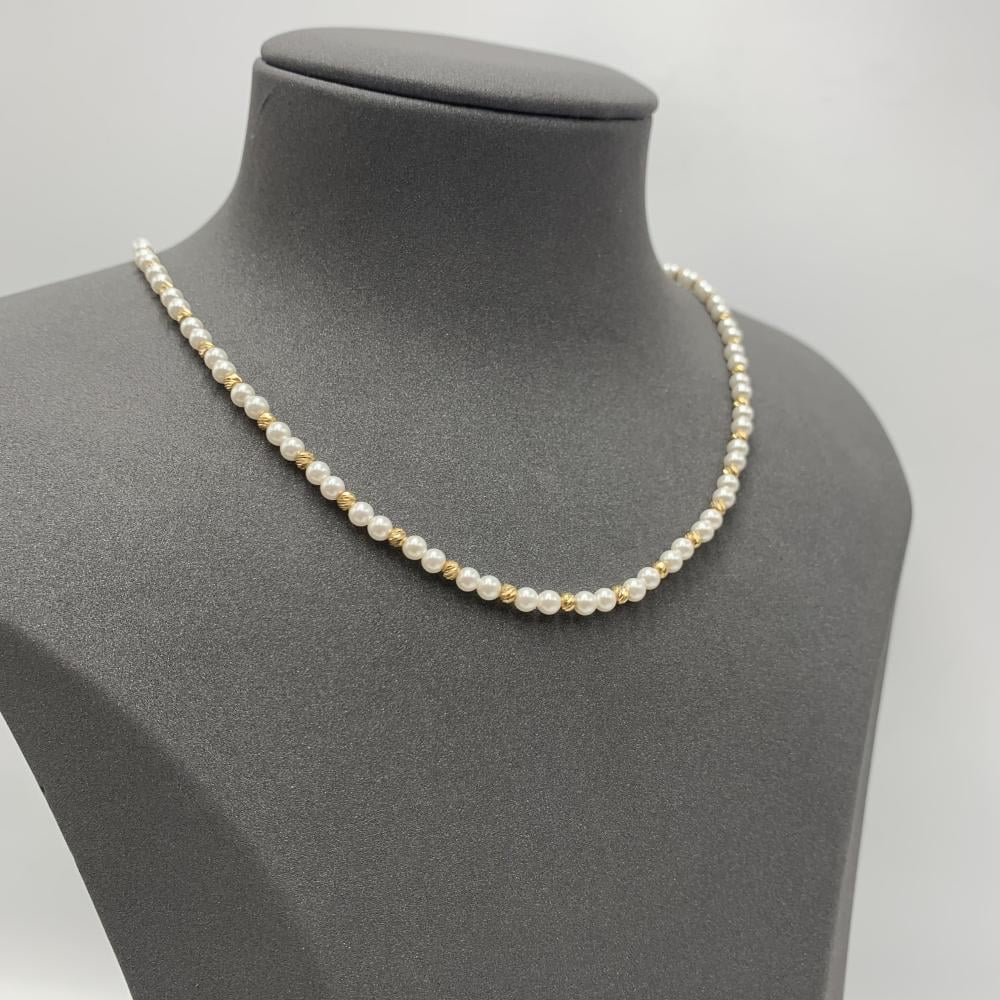 عقد لولو طبيعي زراعي مع كرات الذهب عيار 18 الوزن 2.0