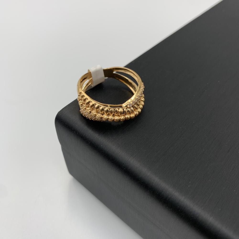 استمتعي بإطلالة فاخرة تعكس ذوقك الرفيع مع هذا الخاتم البحريني عيار 21 قيراط. يتميز بتصميم راقٍ يجمع بين الزخارف الذهبية البارزة والأحجار البراقة التي تضفي لمسة لامعة جذابة. قطعة مثالية لمن ترغب في التميز والظهور بأسلوب عصري فاخر.