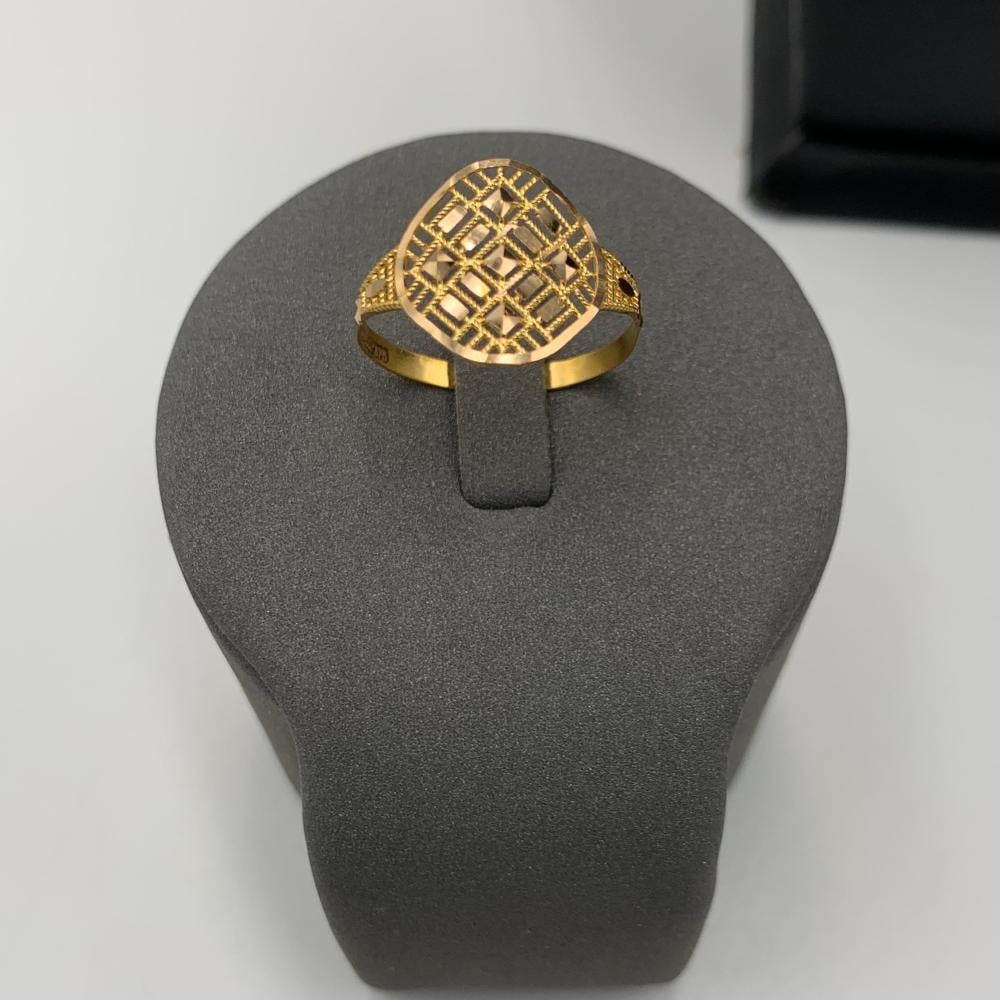 خاتم بحريني ذهب عيار 21 بتصميم شبكي هندسي - وزن 1.0 جرام | أناقة خفيفة بتفاصيل فريدة