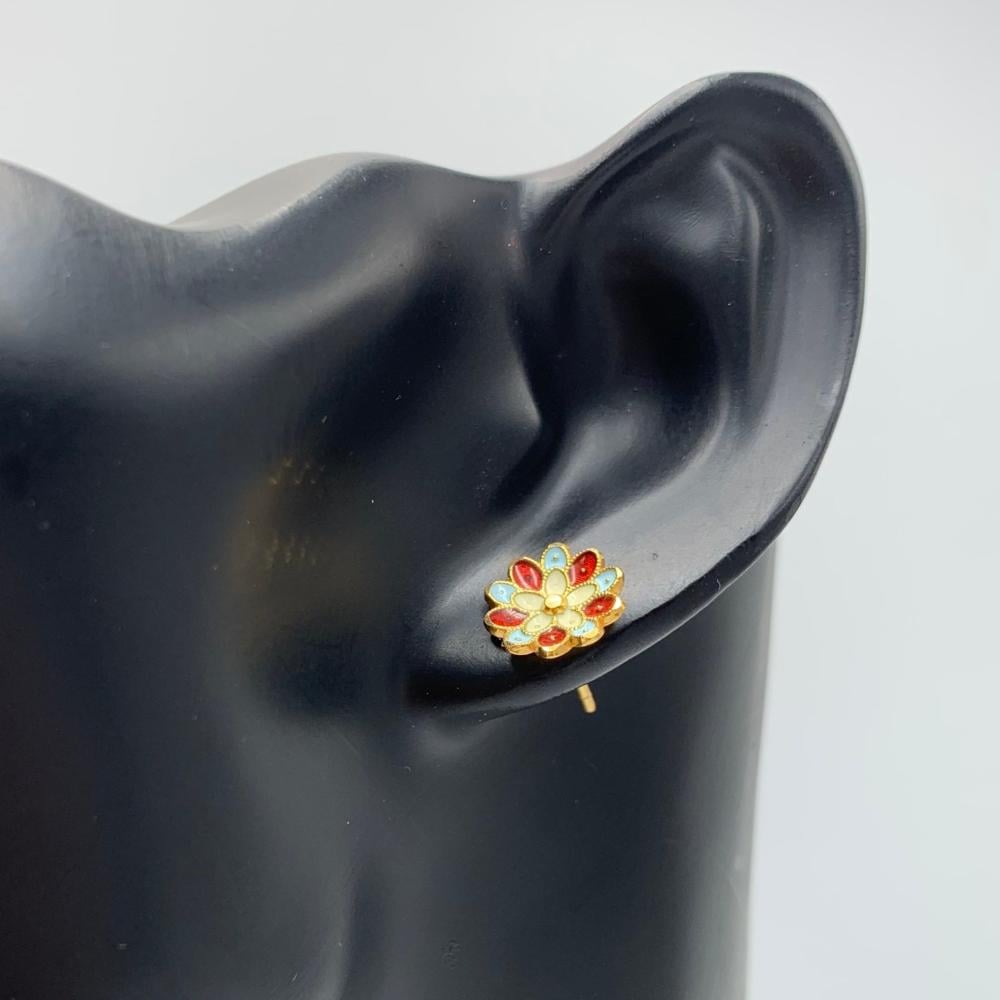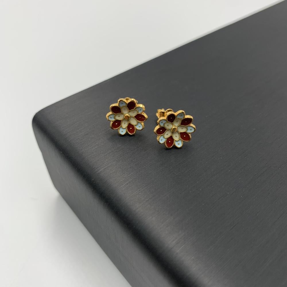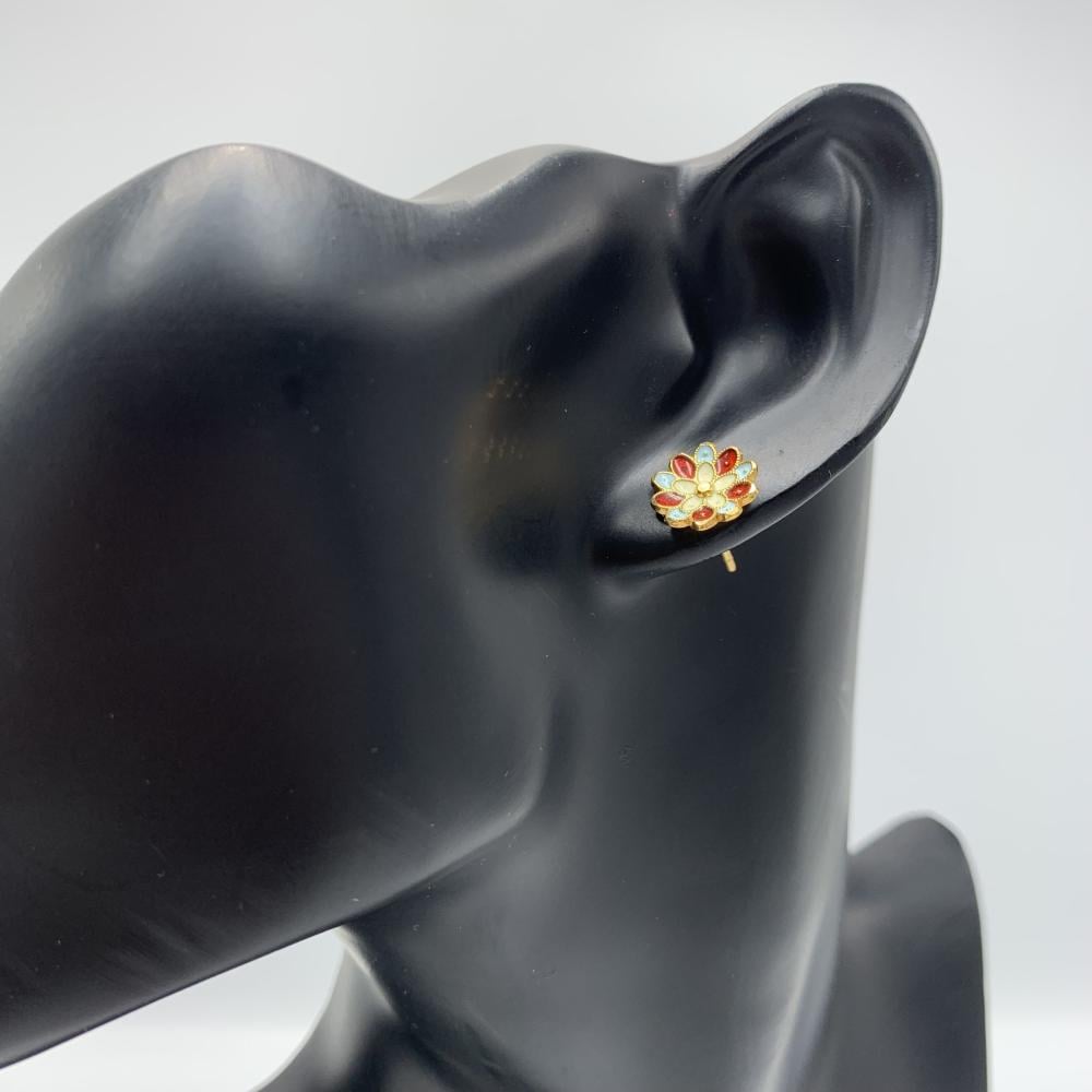 حلق هندي ذهب عيار 21 - تصميم زهرة ملونة أنيق بوزن 2.79 جرام | لمسة تراثية جذابة لإطلالة مميزة