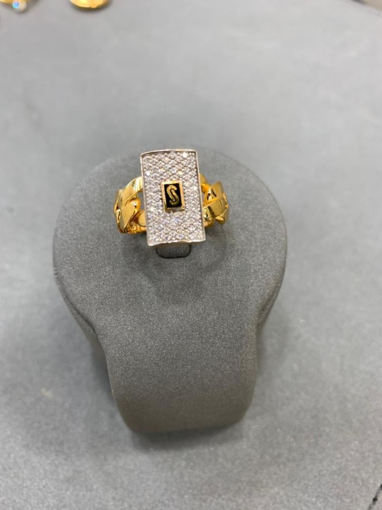 خاتم إيطالي فاخر من ذهب عيار 21 بتصميم مستطيل مرصع ولمسة حرفية لامعة – وزن 5.01 جرام