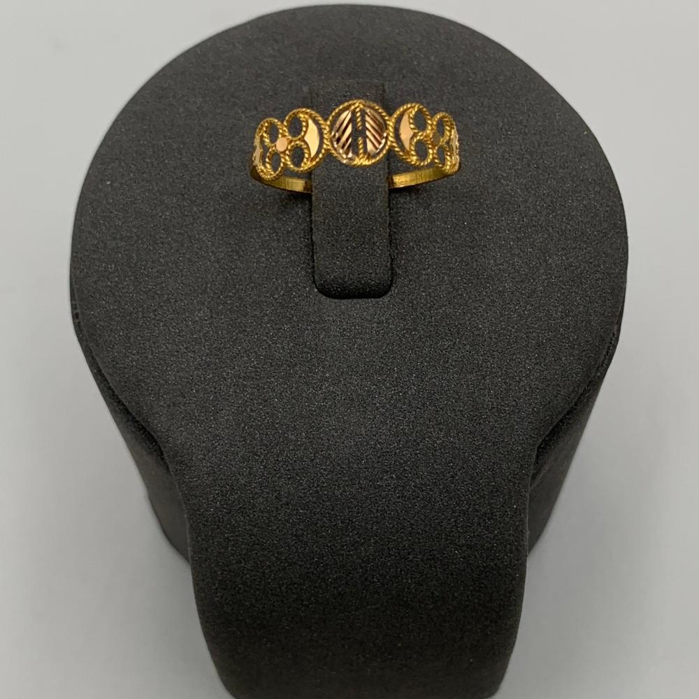 تميزي بلمسة من الفخامة والرقي مع خاتم بحريني ذهب عيار 21 بتصميمه المزخرف الأنيق وخفة وزنه المثالية.