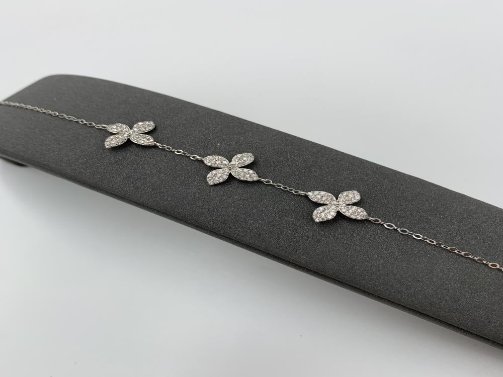 سوارة إيطالية ذهب أبيض عيار 18 – تصميم أنيق بثلاث وردات لامعة بوزن 2.04 جرام لإطلالة راقية وجذابة